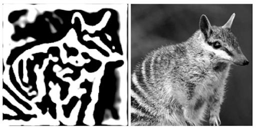 Left = applying a high-pass filter to remove low frequency information. Right = if we now apply a blur that represents how your motion processing system sees things, it no longer sees anything from the filtered image.